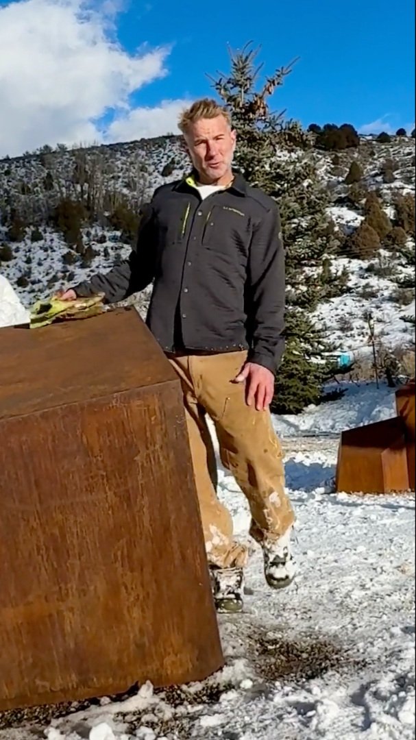 This is the first single piece in the I made full-scale. It is part of the DFMI series and represents the mountains, the place where I found a bit of a clarity distance trail running before my diagnosis of bipolar. It is made of corten weathering steel. This piece will continue to darken over time to a uniform dark rust color.
