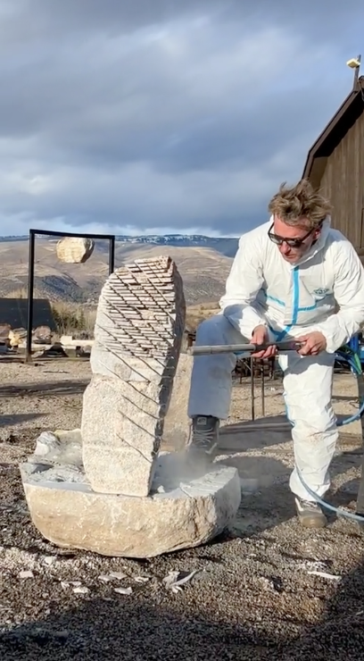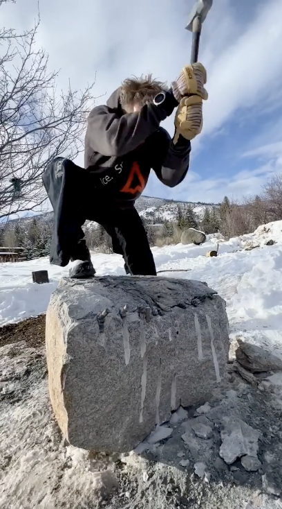 Inside Out implies often our beautiful exterior fails to tell the story beneath. This polished granite boulder is cut into 7 pieces. We then make hundreds of saw cut and finally torch those pieces in excess of 5,000 degrees. The charred result I’m calling ‘scared stone’. I’m proud to say this piece will be going in front of the new Vail Health - Behavioral Health Campus. I am humbled and honored.